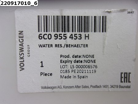 Бачок омывателя фар Артикул: 220917010 Оригинальный номер: 6C0955453H Производитель: VAG Описание: 5.0 L под датчик Применимость: Volkswagen Polo (HB) 2009-2017, Audi A1 I (8X) 2010-2018